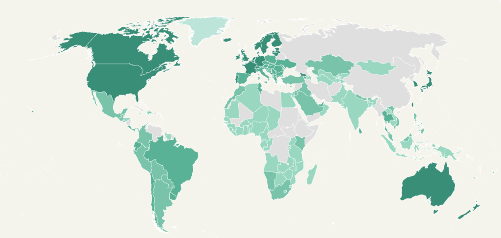 Beyond individual-level discussion, country-level disparities are concerning too. Figure 4 shows the global usage index of Claude. The darker green the countries are, the more likely their populations (per capita) are to use Claude. We can see that countries with the highest per capita usage rate of Claude are major Western powers and other advanced frontier AI economies, led by Israel, Singapore, and Japan. It is noteworthy that in accordance with international sanctions and Anthropic’s commitment to supporting Ukraine’s territorial integrity, the Claude services are not available in areas under Russian occupation. Furthermore, the Claude services are not available in China.