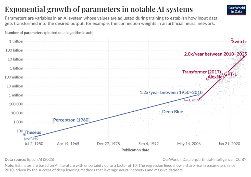 Figure 3: Exponential growth of parameters in notable AI systems